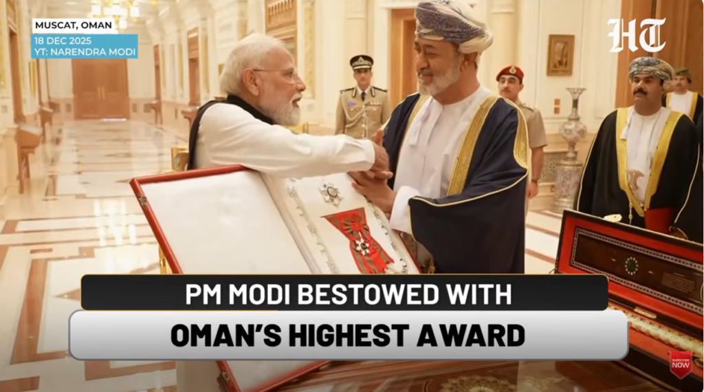 Prime Minister Narendra Modi’s Oman visit in December 2025 marked a significant milestone in India’s diplomatic outreach to the Gulf region. During his two-day trip to Muscat, Oman, Modi was conferred with the nation’s highest civilian honour, the Order of Oman, in recognition of his efforts to strengthen India-Oman relations across trade, defence, energy, and cultural ties.